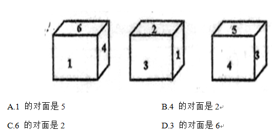 【例4】有一個立方體,每個面上分別寫上字l、2、3、4、5、6,有3 個人從不同角度觀的鶞G如下圖所示,對這個立方體的每一個字的對面的字推斷不正確的是( )