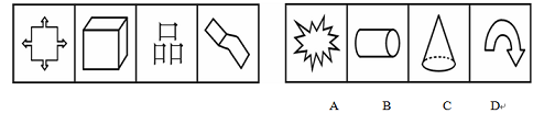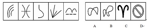 【析】這道題考查的是曲直性。隻根據題干很難找到規律,同樣分析選項就比較容易看出區別,BCDㄛO曲線圖形,隻有A選項是直線圖形,而題干中也ㄛO直線圖形,所以選擇A選項。