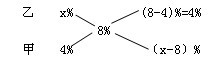 【析】本題直踇用濃度公式計算比較煩,不僅浪費時間,而且容易出h,用十字交叉法很快就可以得到答案。設乙容器中鹽水的濃度約是x%
