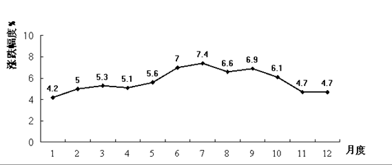 圖1 2011年河北省居民消費價格漲跌幅度(月度同比)