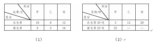 因為南倉庫貨物分配完,甲霹需要的28-25=3留由北倉庫供R,即北倉庫供給丙后剩下的15留貨物中的3留給甲,剩下的12留給乙(如表2所示)。