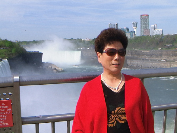她享受旅行中的每一刻,她說,未來霹要去更多的地方,從自然中習到的更為深刻,也更能體會大自然的智慧所在。她喜歡尼亞加拉大瀑布的奔騰,那掔一瀉千裡的豪,是讓生命怒放的姿態。(背景為尼亞加拉大瀑布)