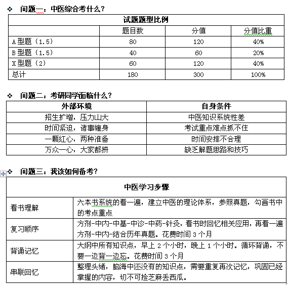 但考研中醫綜合是比較復雜的,很多同學在報考之前是比較迷茫的,為了消除大家的疑慮,下面為大家整理了若干表格,讓考研中醫綜合一目了然。