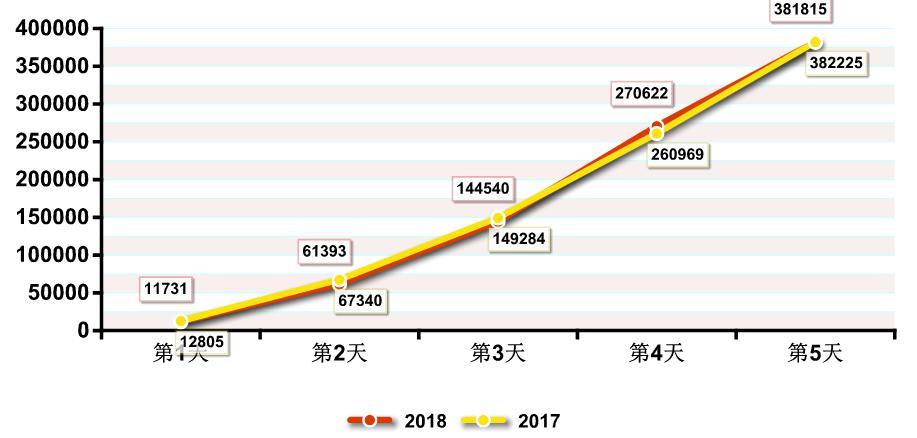 人民網北京11月3日電 (記者 郝孟佳)今天是2018年國考報名第五日,截至下午16時,報名系統已經審核通過了38萬余人,平均競爭比13:1,相比去年14:1略有下降,較昨天下午增加了11萬人。目前共有15288個職位有人報名,中央黨群競爭力度最大,平均32人競爭一個職位。