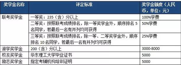 3. 校友獎學金:考生在規定時間段提出申請並提供華東理工大學畢業証書后評定﹔