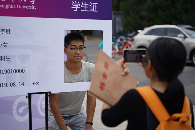 清華新生在“學生証”卡板前留影 劉一凡/攝