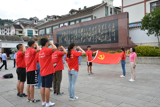 資料圖:廈門大學“凝心聚力,心動空天”暑期社會實踐隊在遵義會議會址前重溫入黨誓詞(學校供圖)