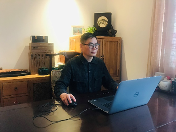 李建勇老師居家為學生在線上課(受訪者供圖)