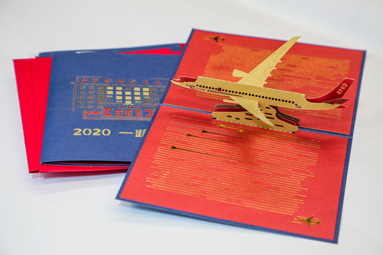 新生專屬中陽剪紙,由中陽人純手工雕刻而成,鏤空的紙雕飛機代表著對新一代北航人翱翔九天的希冀。(學校供圖)