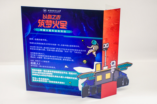 郵寄禮包內的“以你之志,筑夢火星”的火星車征名邀請函(學校供圖)