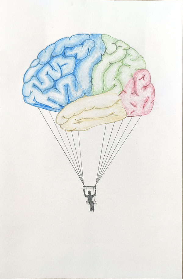作者吳曉娜解讀:大腦是人體非常重要的器官,人的思維活動,學習和記憶都是在大腦進行的。近些年來,因為各種各樣的原因,人們無論是在學習還是在工作中都存在一定的思維定勢,本作品將熱氣球用大腦來代替,希望人們都能自由的思考,擺脫既有的思維定勢。