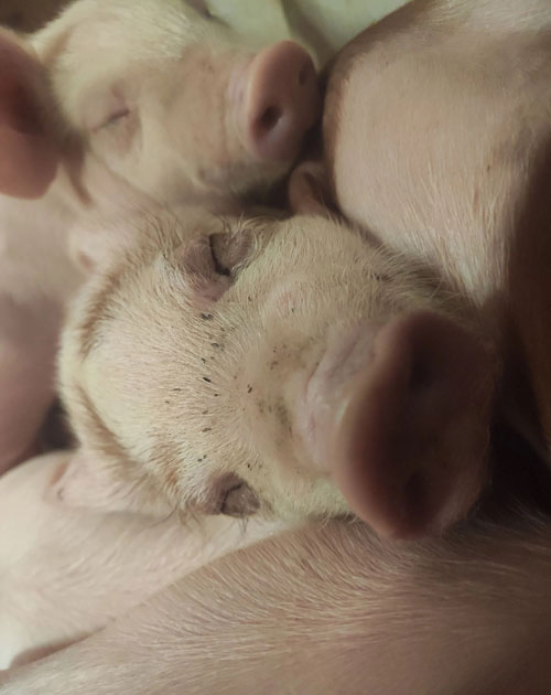 剛死去的小豬是最好撿的,可以整個拿起來裝袋。等腐爛到一定程度,拿起的時候就可能斷成兩節,有的腐爛到化成一攤碎渣粘在地面上,還會被其他小豬拱得零零散散。