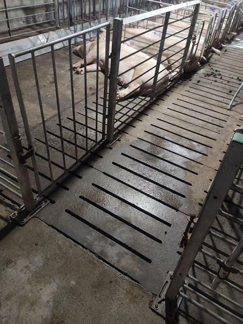 鄧宇恆遇見過好幾次,母豬把欄位撞開跑到過道溜達,還有的豬執著地在欄裡掉頭,把屁股對著料槽。有一次,一頭試圖越獄的豬跳到一半卡在了欄桿上,他同事前去解救,豬暴躁起來,在同事肚子上蹬出一塊淤青。