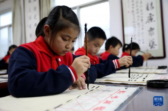 10月8日,河北省邢臺市任澤區達二小學學生在練習書法。新華社記者 駱學峰 攝
