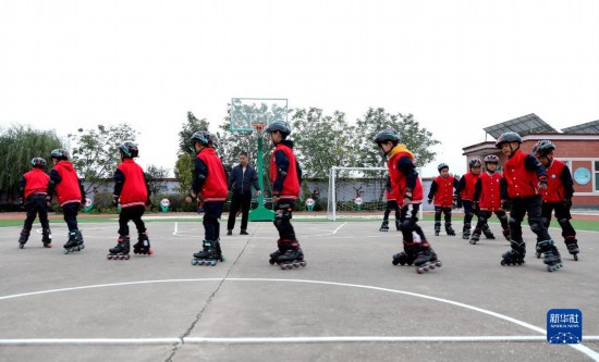 10月8日,河北省邢臺市任澤區達二小學學生在練習輪滑。新華社記者 駱學峰 攝