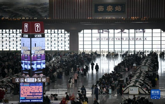 1月17日,旅客在西安站候車大廳候車。新華社記者 李一博 攝