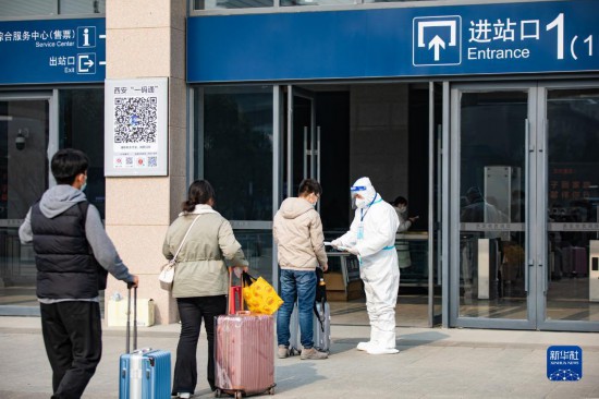 1月17日,旅客在西安火車站有序進站。新華社發(劉翔攝)