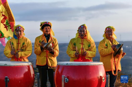 2月7日,戲班成員在排練龍裡太平花燈戲時伴奏。