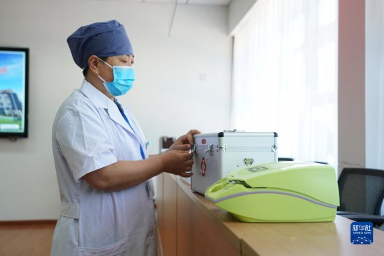 6月5日,在中國農業大學附屬中學考點,校醫在醫務室準備醫療用品。