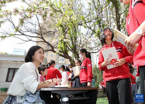 當日,北師大實驗華夏女子中學舉辦以“春和”為主題的第二屆“海棠詩會”。師生們選取有關“春天”“和煦”“生機”“美好”的詩歌,在校園的海棠樹下賞析吟誦,共享詩歌之美,傳承中華優秀傳統文化。