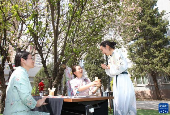 當日,北師大實驗華夏女子中學舉辦以“春和”為主題的第二屆“海棠詩會”。師生們選取有關“春天”“和煦”“生機”“美好”的詩歌,在校園的海棠樹下賞析吟誦,共享詩歌之美,傳承中華優秀傳統文化。
