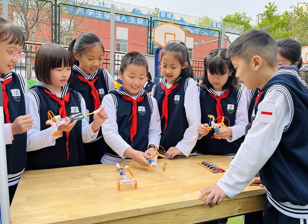 當天,朝陽區實驗小學以“少年科技夢 創新筑未來”為主題開展系列科技活動,讓學生零距離感受科技的魅力,培養學生的創新精神和實踐能力。記者在現場看到,活動設置了“過山車”展區、“紙飛機”展區、“月球車”展區、“建筑模型”展區、“太空展”展區等11個展區,還邀請了朝陽區實驗小學雄安校區、朝陽區實驗小學雄安容西分校的100余名師生參與體驗。