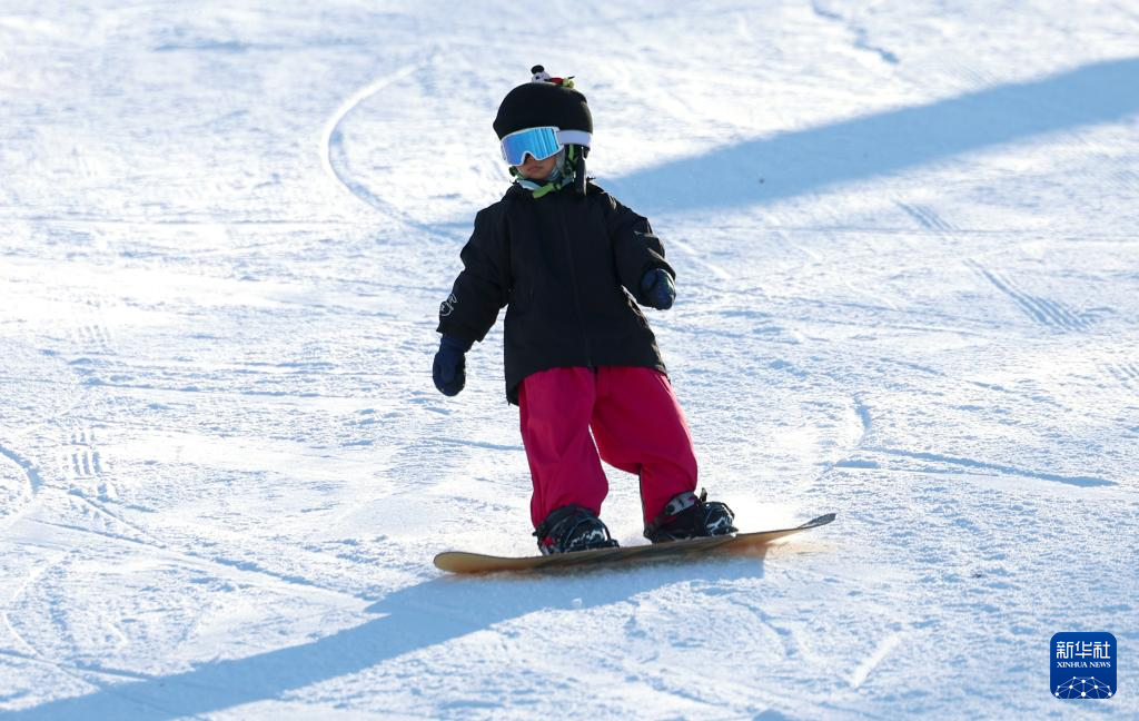 12月21日,一名小朋友在河北省石家莊市鹿泉區冰雪小鎮滑雪。