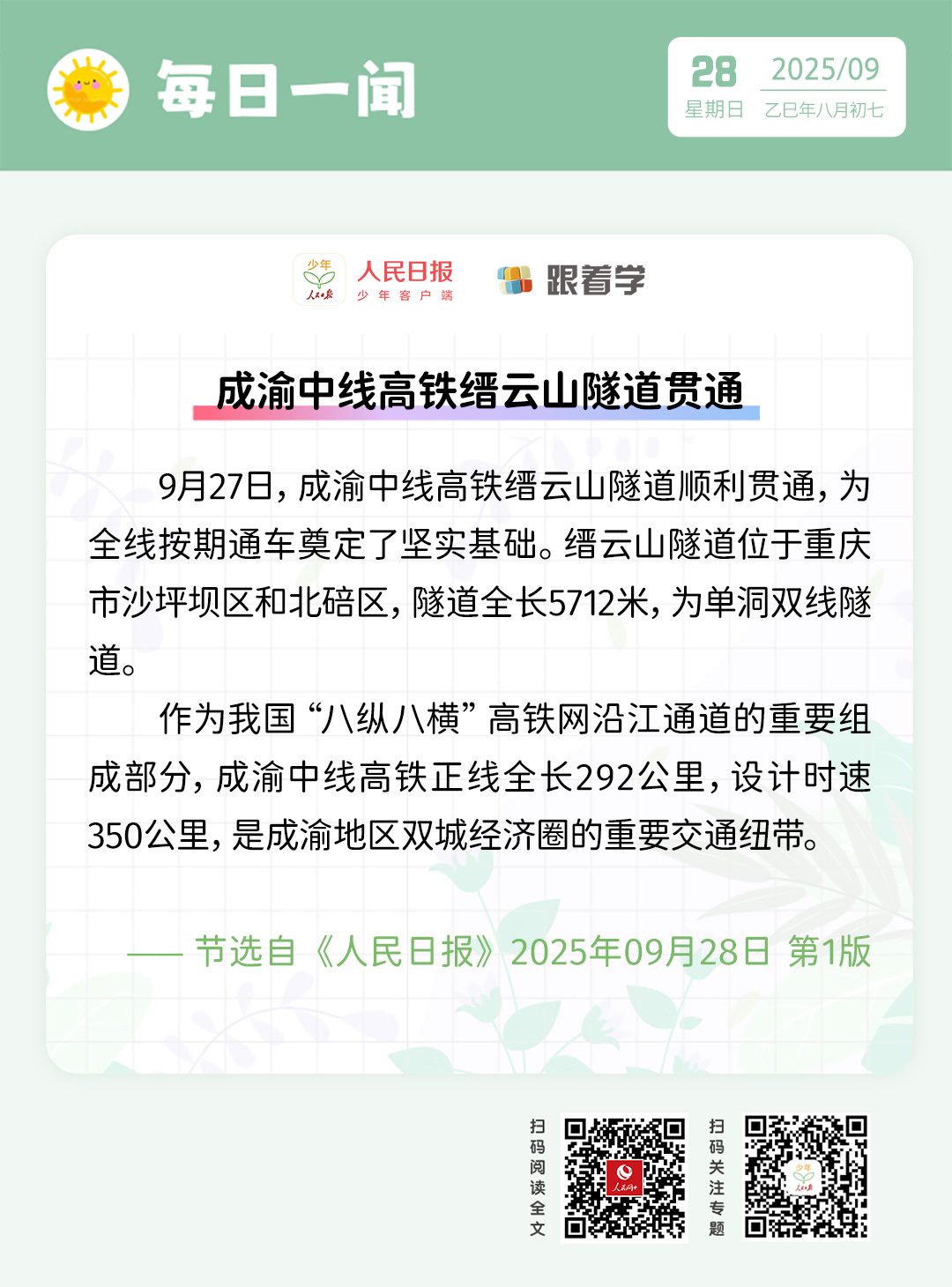 每日一聞丨成渝中線高鐵縉雲山隧道貫通