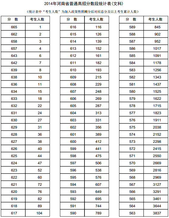 四川省2014年普通高考文科成績分段統計表 分數 人數 累計 分數 人數 累計 分數 人數 累計 …[詳細]