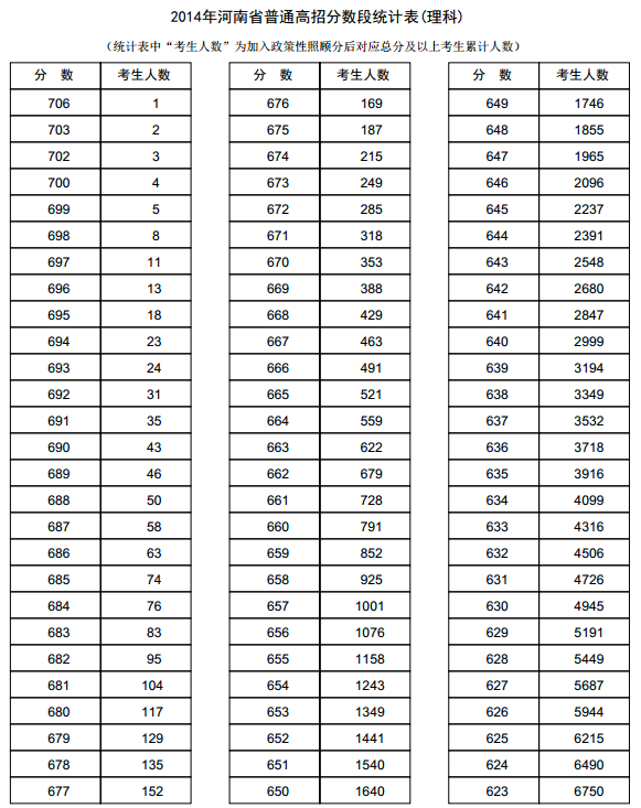 2014年理科含加分本科一分段表[志愿填報] 分數段 人數 累計人數 699 1 1 …[詳細]