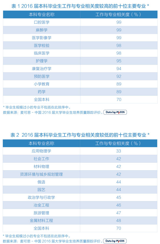 人民網北京6月16日電 (記者林露)高考結束后,志愿填報成了家長和考生面臨的另一道難題。麥可思近日發布《2017年中國大學生就業報告》(就業藍皮書),報告指出,三成以上畢業生工作與所學專業不對口;醫學類專業工作與專業相關度高;應用物理學工作與專業相關度較低;“與職業期待不符”、“迫于就業壓力”是選擇…[詳細]