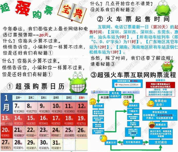 濟南鐵路局首次發布了《春運購票指南》,介紹了網絡、電話、窗口等購票的小竅門和注意事項。詳細>>>