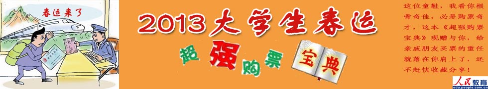 鐵道部運輸局有關負責人表示,鐵路部門最大限度保證學生購票。自2012年12月15日起,學?赏ㄟ^12306網站優先辦理學生團體往返票。詳細>>>