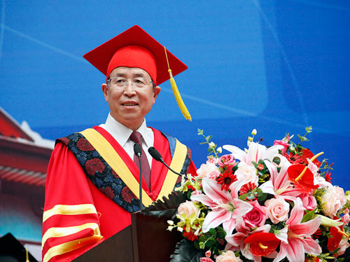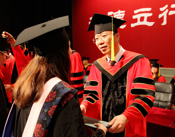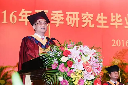 你們不同于本科生,他們剛結束了大學四年的生活,還不太成熟,需要繼續培養,走向社會以后還需要多加歷練;而你們歷經了本科生,又經歷了研究生階段,有很多人還有工作的經歷,因此你們應該知道什么是擔當,什么是責任。你們有自己的家庭,你們應該對家庭負責;你們有工作單位,應該對這份事業負責;你們身處中國大地上,應該對國家負責,因為你們是交大的學子,是交大的碩士博士,你們應該有這份擔當。