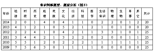 (二)考查科的涵蓋更為廣泛。根據對近年國考行測題的分析,2009年開始,常識判斷改變了原來洙純考查法律知識的模式,向於多元化命題,更加注重對綜合素質與能力的考查。