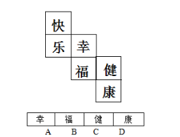 【解析】B 立體圖形的折疊問題(變形題目)。根據題干信息可知,正方體的上面和下面是一對相對面,根據相對面的判定規則:“快”和“?!笔且粚ο鄬γ?,“樂”和“健”是一對相對面,“幸”和“康”是一對相對面。因此,如果“快”是正方體的上面,則這個正方體的下面是“?!?。故選B。