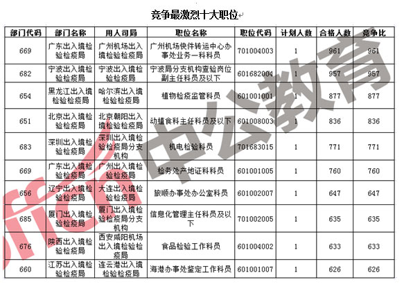 國考報名結束:出入境檢驗檢疫過審81694人 平均競爭比91:1