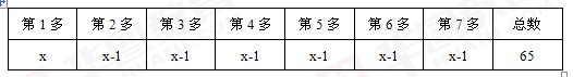 依據上表可列出方程,x+6×(x-1)=65,解得x=10.1。最少為10.1人,取整為11人。因此,本題的正確答案為B選項。