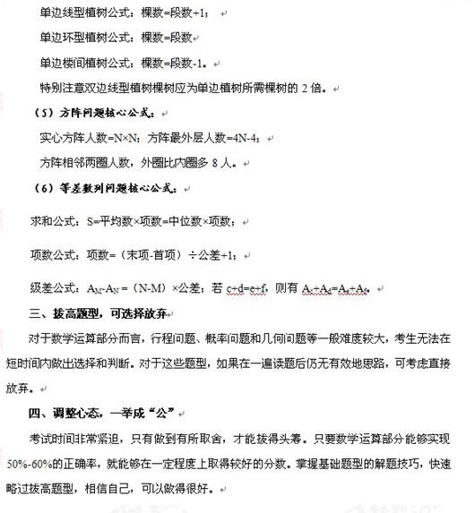 在考場上,很多考生根本沒時間做數量關系部分,而是采取直接蒙題的策略。其實,隨著近兩年數量關系部分整體難度的下降,60%-70%的考題都是中等及以下難度的題型。掌握好解題技巧,快速挑選出這些題目,可以獲得非常大的優勢。所以,對于這部分不能輕言放棄,最后做數量關系部分,只做會的,不會再選擇放棄。