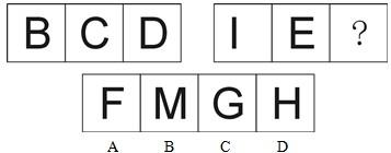 本題圖形組成的元素均為字母,整體觀察,可以看出,第一組字母均為橫向軸對稱,第二組前兩個字母也為橫軸對稱,那么問號處字母也應該為橫軸對稱。故選D。