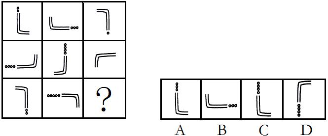 【例1】從所給的四個選項中,選擇最合適的一個填入問號處,使之呈現一定的規律性( )。