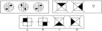 【例6】從所給的四個選項中,選擇最合適的一個填入問號處,使之呈現一定的規律性( )。