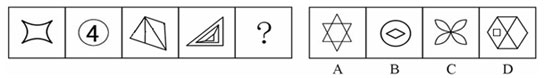 【解析】A。本題考查圖形的部分數。題干各圖形含有的組成部分個數分別為:2、3、4、5、(?),因此“?”處圖形應該含有6個組成部分,構成等差數列。故選A。