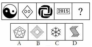 【解析】D?疾榉忾]空間的數量。題干給出的圖形含有的封閉空間的數量分別為:1、2、3、4、(5)。故選D。