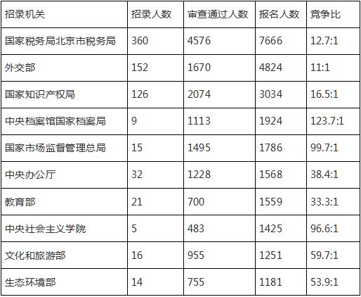 【截至18日9:00】2020國考北京地區報名最熱門的十大招錄機關