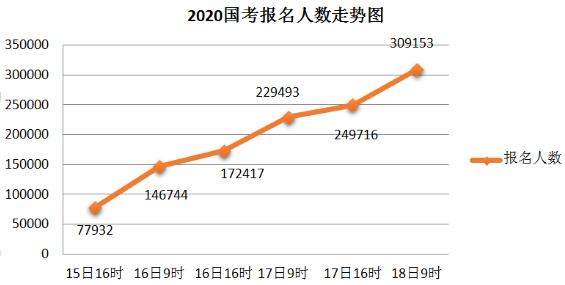 從每8小時統計的報名人數來看,考生對國考表現出積極踴躍的態勢,報名數據直線上漲;從報名人數與增長量來看,目前已經進入了報名熱度期,建議考生時刻關注自己報考職位的審核狀態,根據招錄單位的審核意見進行信息補充或修改,如果已經通過了審核,也可以看看自己報考的職位有多少人也通過了審核,對自己有多少競爭對手一目了然。