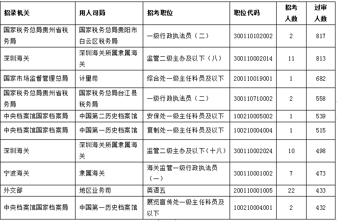 2020國考報名過審人數最多前十職位【截至18日9時】