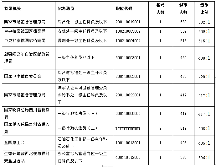 2020國考報名競爭最激烈前十職位【截至18日9時】