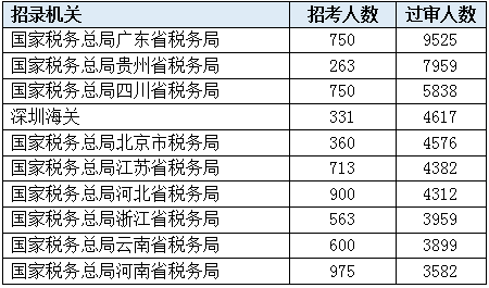 2020國考報名過審人數最多前十部門【截至18日9時】