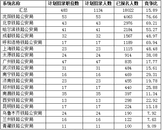 2020國考鐵路公安系統各招考部門報名情況(截至21日17:00)